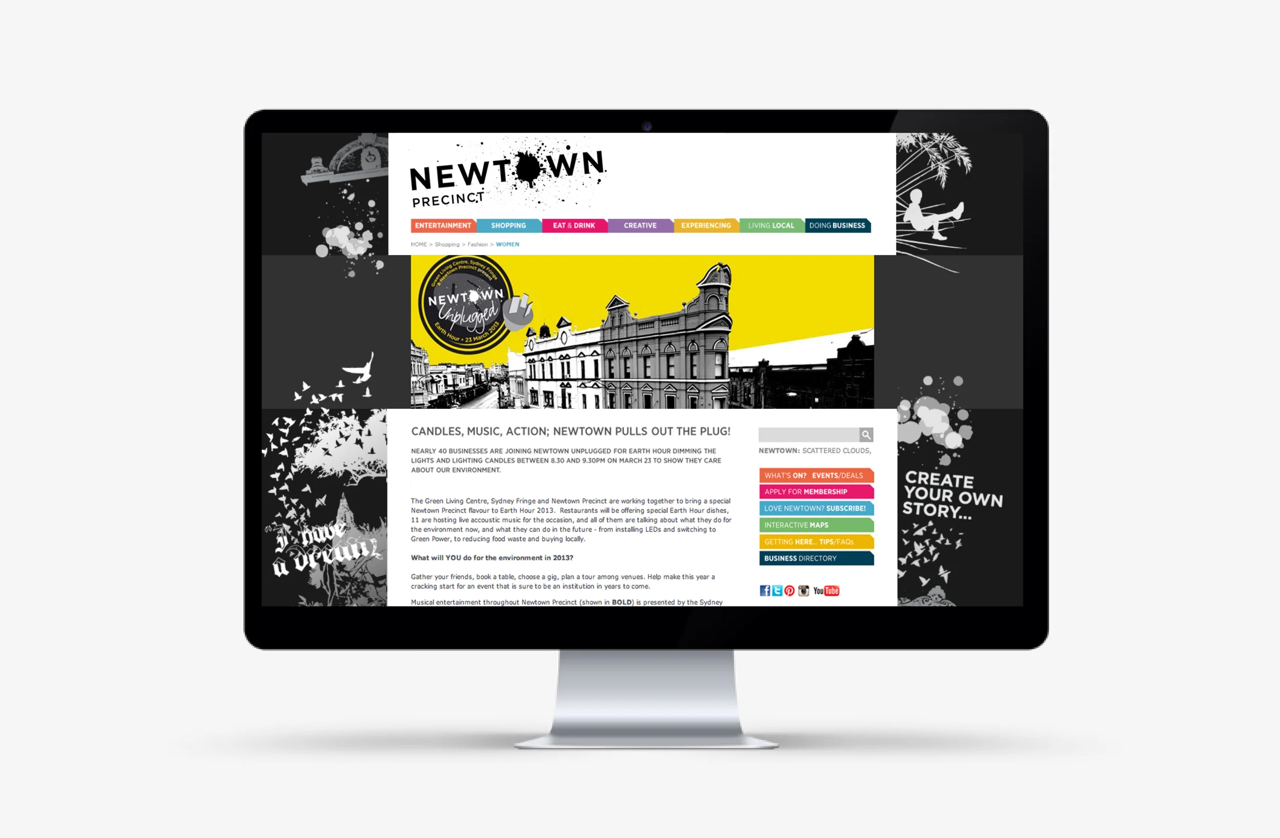 Newtown Council required the design of a website that acted as a portal for Newtown to attract visitors and boost the local economy. It was paramount that it reflected Newtown’s dynamic, alternative and colourful vibe. Photographing local shopkeepers, bar owners and artists, as well as using illustrations, gave the website a more local and intimate feel. Colour themed category navigation made it much easier to navigate and delivered a much cleaner user experience.